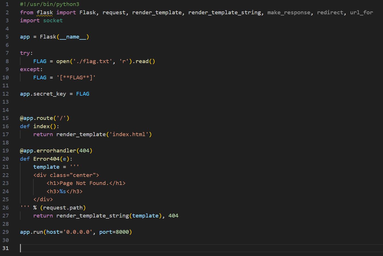 존재하지 않는 페이지 방문 시 404 에러를 출력하는 서비스에서 SSTI 취약점을 이용해 플래그를 획득해야 한다.
