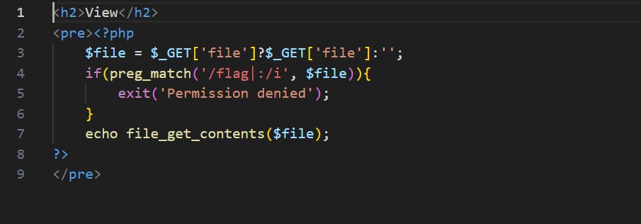 view.php 여기서는 flag, : 필터링에 걸리면 Permission denied가 뜰 것이다.