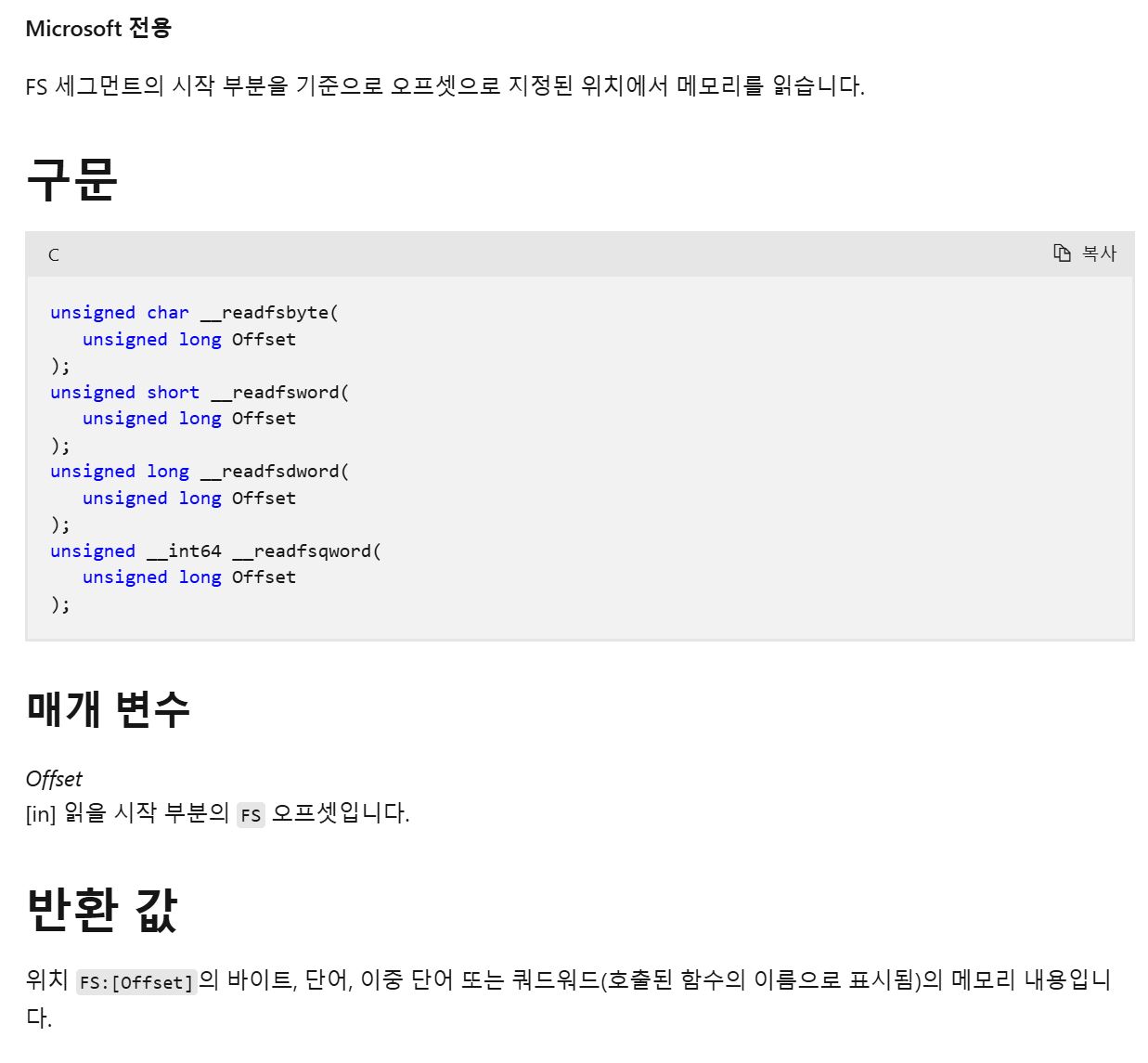 개인적으로 그냥 궁금해서 __readfsqword() 함수가 뭔지 찾아보았다.
