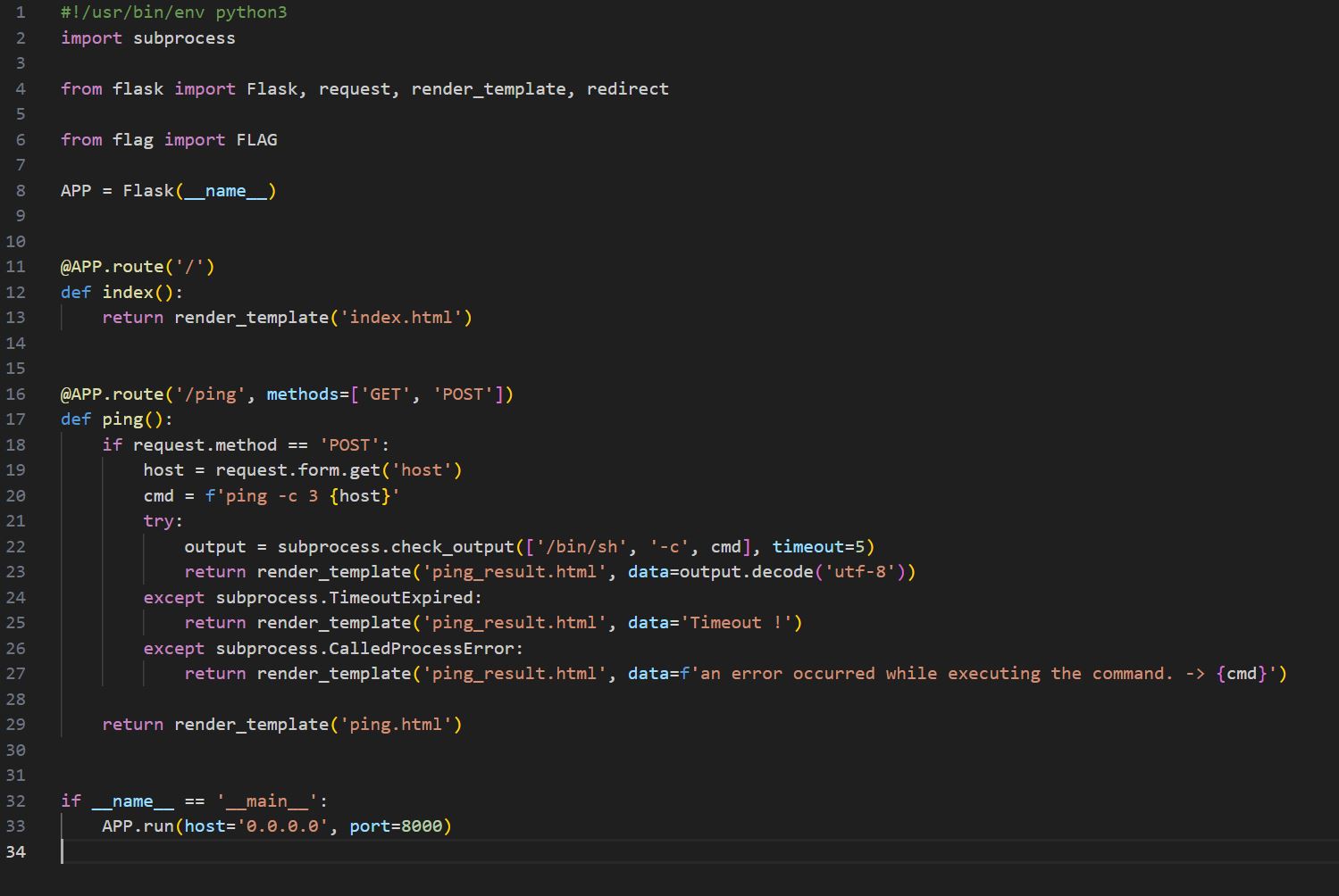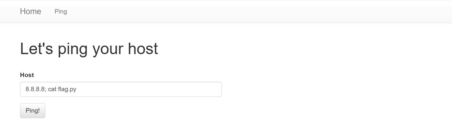 command injection으로 플래그를 획득하는 간단한 문제이며, 플래그는 flag.py에 있다고 한다.