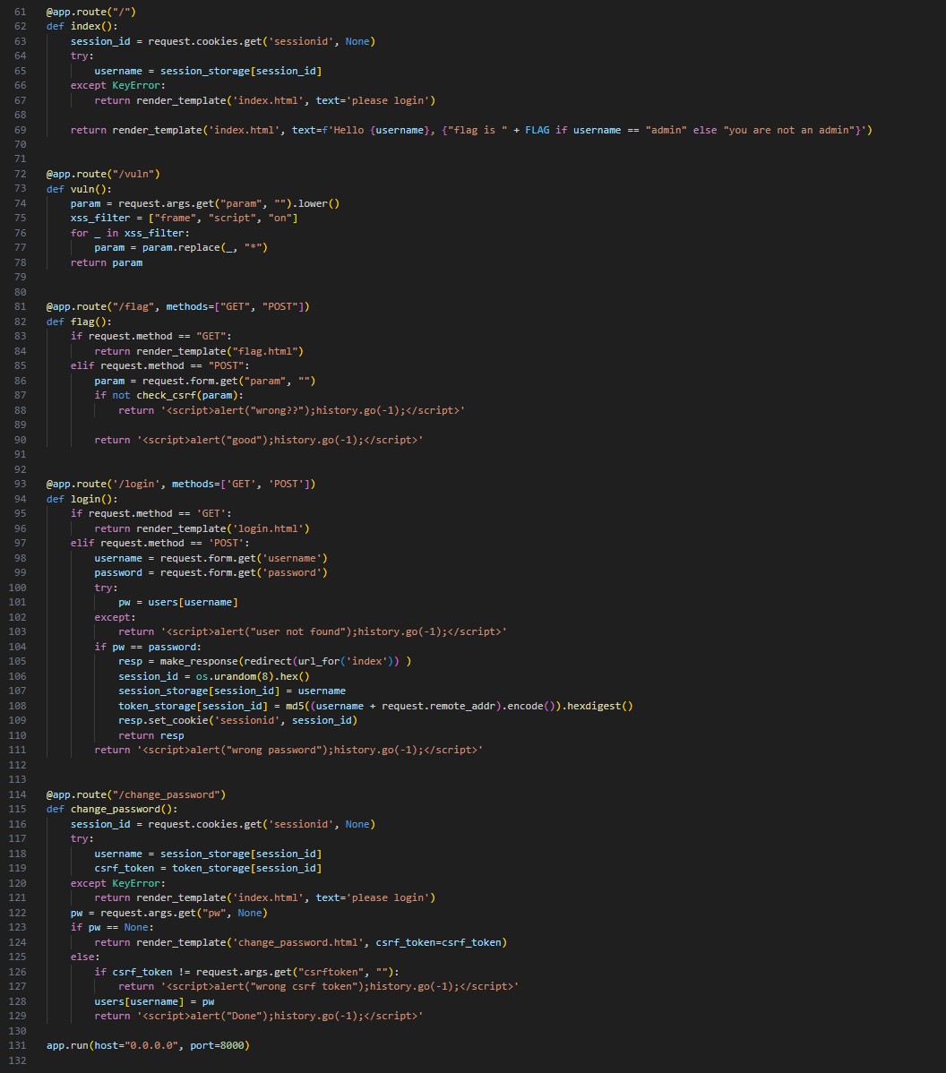 change_password()를 보아, csrf 토큰값과 바꾸려는 비밀번호를 같이 넣으면 admin의 비밀번호를 바꿀 수 있다.