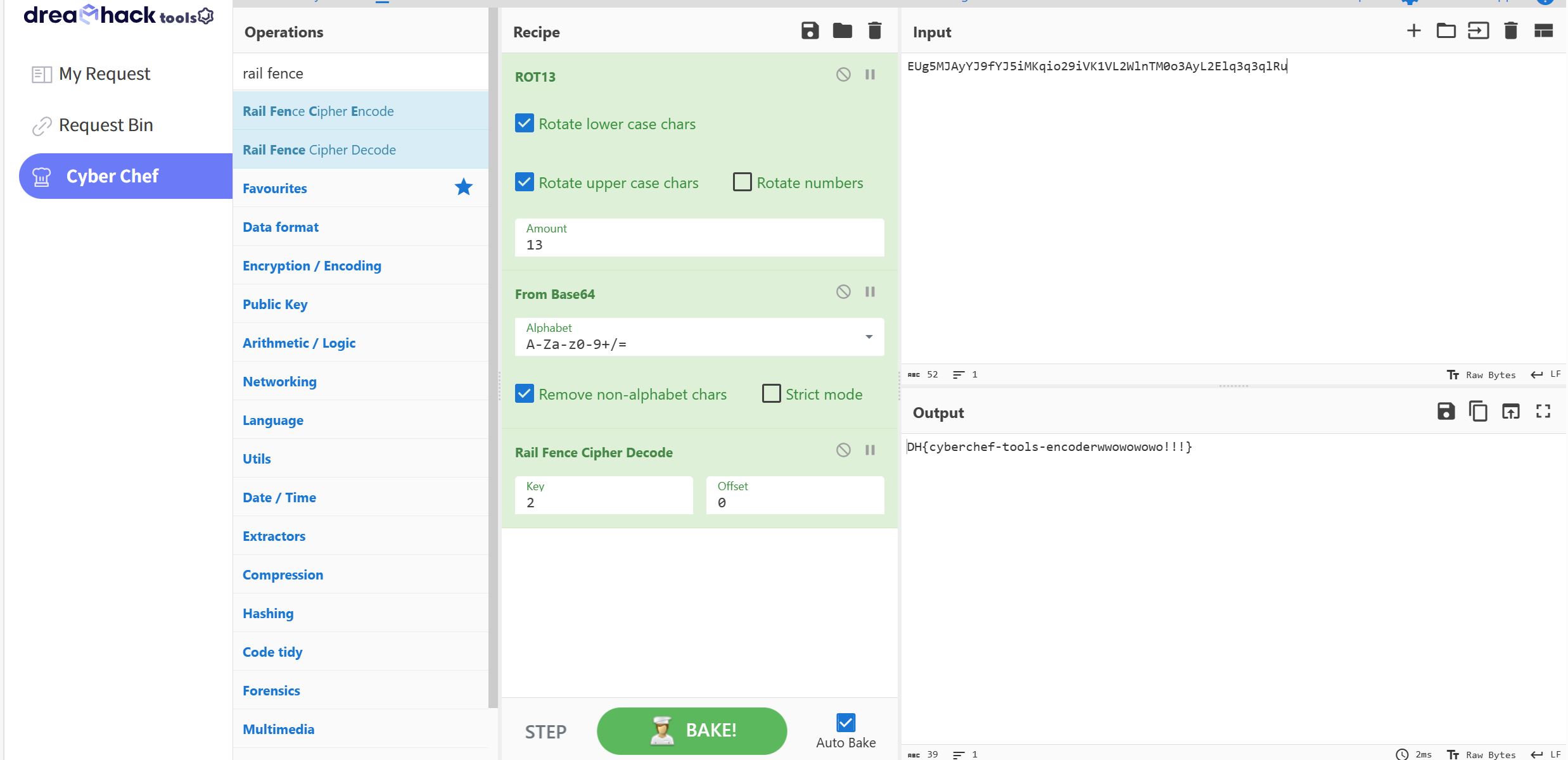 애초에 문제에서 드림핵에서 제공하는 dreamhack-tools 중에서도 Cyber Chef를 이용해서 풀으라고 되어있다.