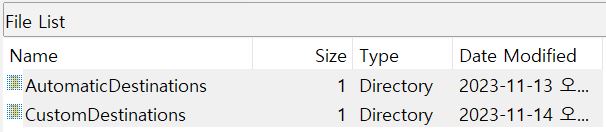 FTK imager 실행 → Add Evidence Item → Logical Drive → 저번 lnk 실습 때처럼 기본 그대로 두고 finish → 위의 경로 찾아가서 AutomaticDestinations랑 CustomDestinations 둘 다 선택해서 export files → 바탕화면 lnk_jumplist 폴더에 추출 → 추출된 거 보기 전에 저거 두 개 ftk imager에서 각각 들어가보면 처음 보는 확장자명으로 파일 엄청 많음