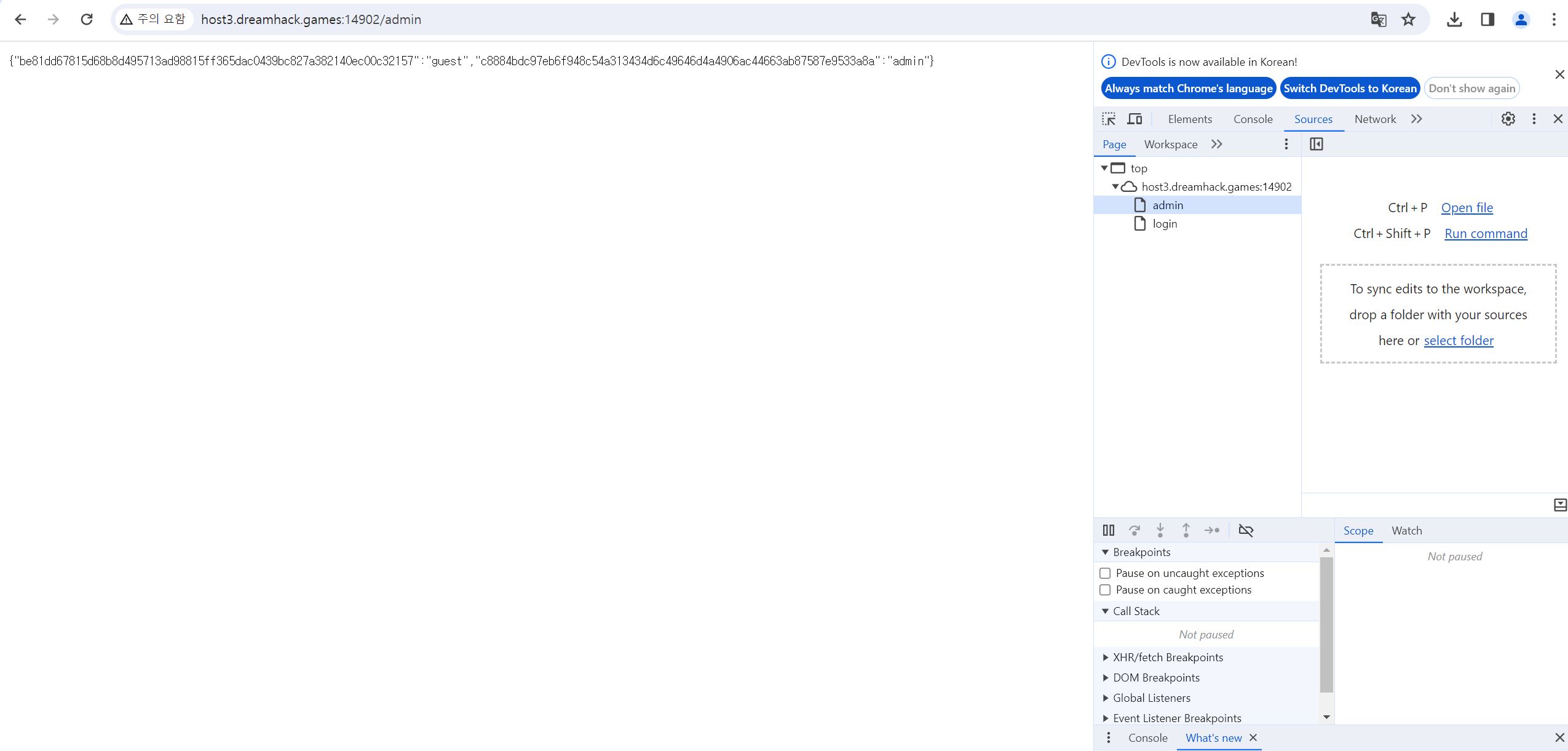 그러고 새로고침을 하면 admin으로 로그인에 성공할 수 있다.