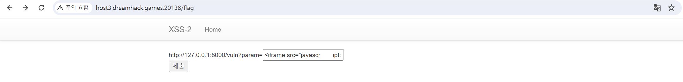 vuln.html vuln.html을 보면 innerHTML로 처리하기 때문에 자바스크립트가 외부에서 삽입되는 것이 차단되어 있다는 걸 알 수 있다.