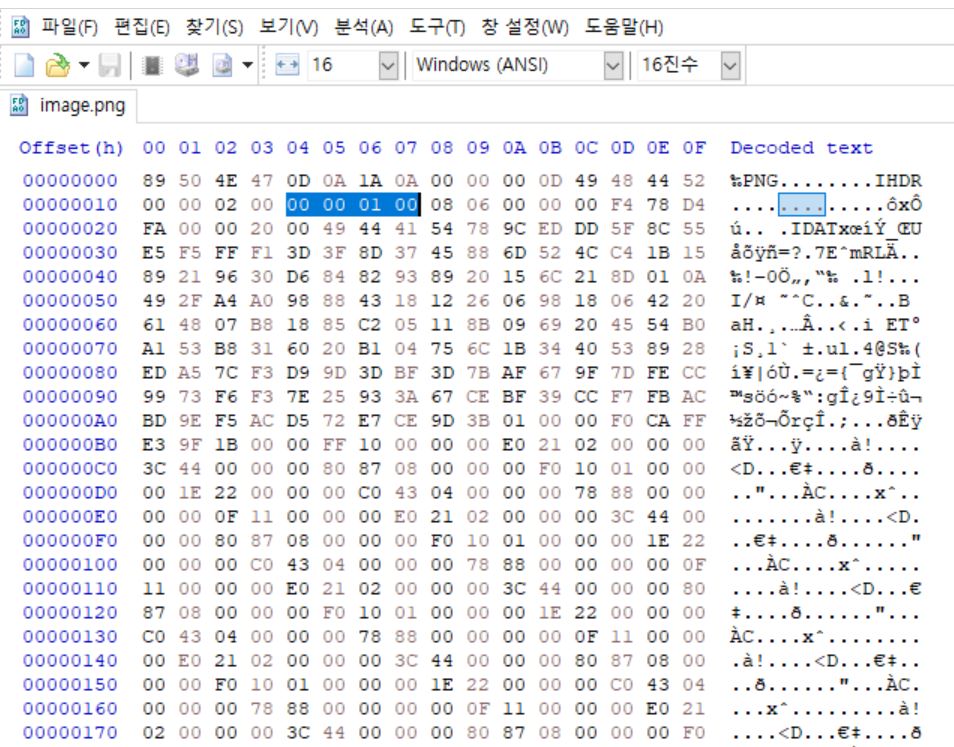 따라서 높이 부분인 00 00 01 00을 수정하면 된다.