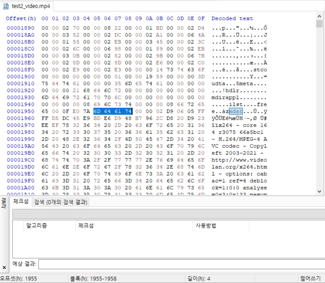 해당 파일을 보다보면 mdat이 나온다.