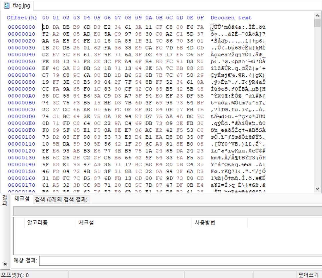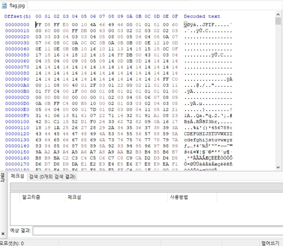 파일 이름은 flag.jpg인데 HxD로 열어보면 손상된 걸 알 수 있다.
