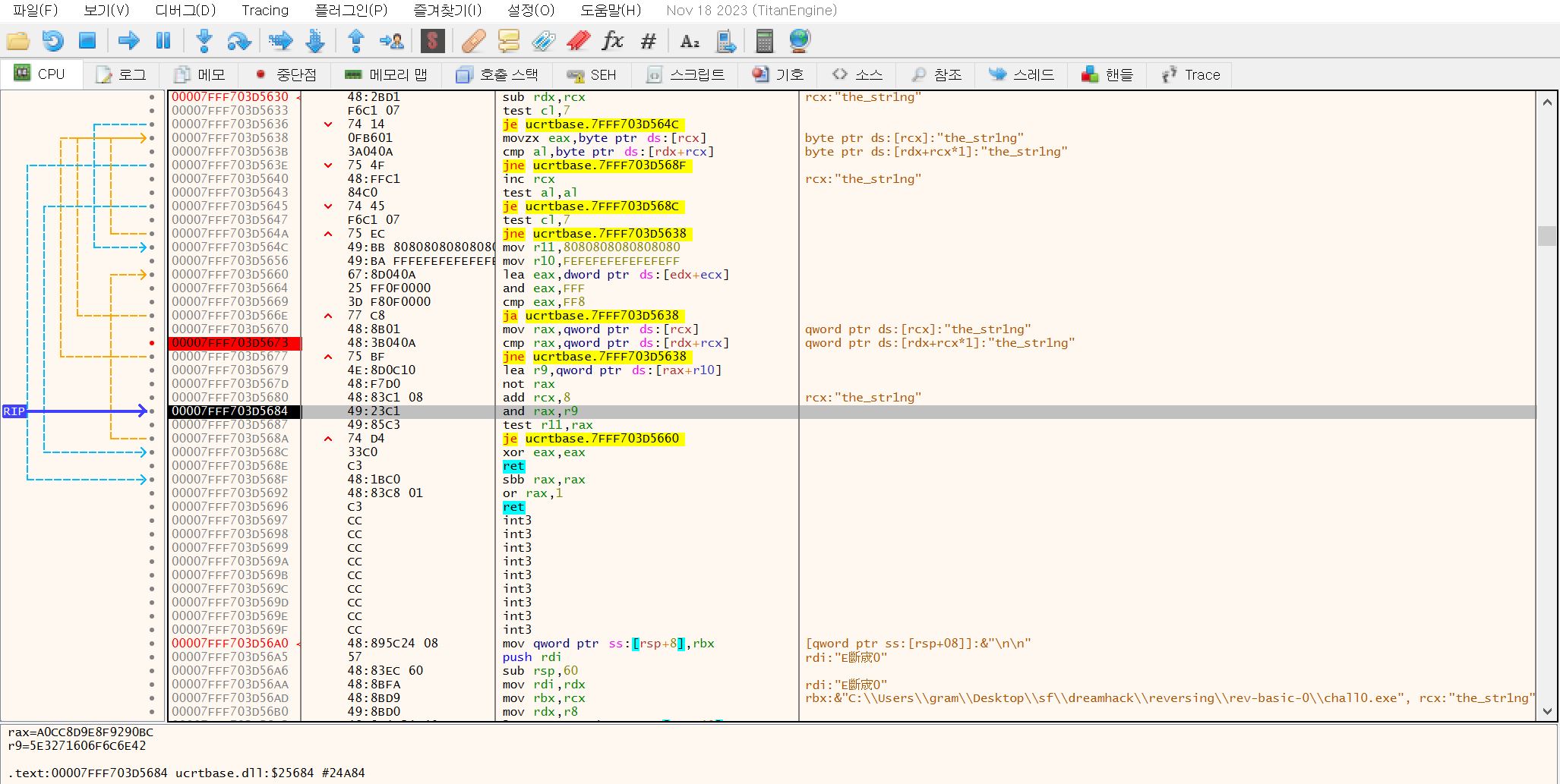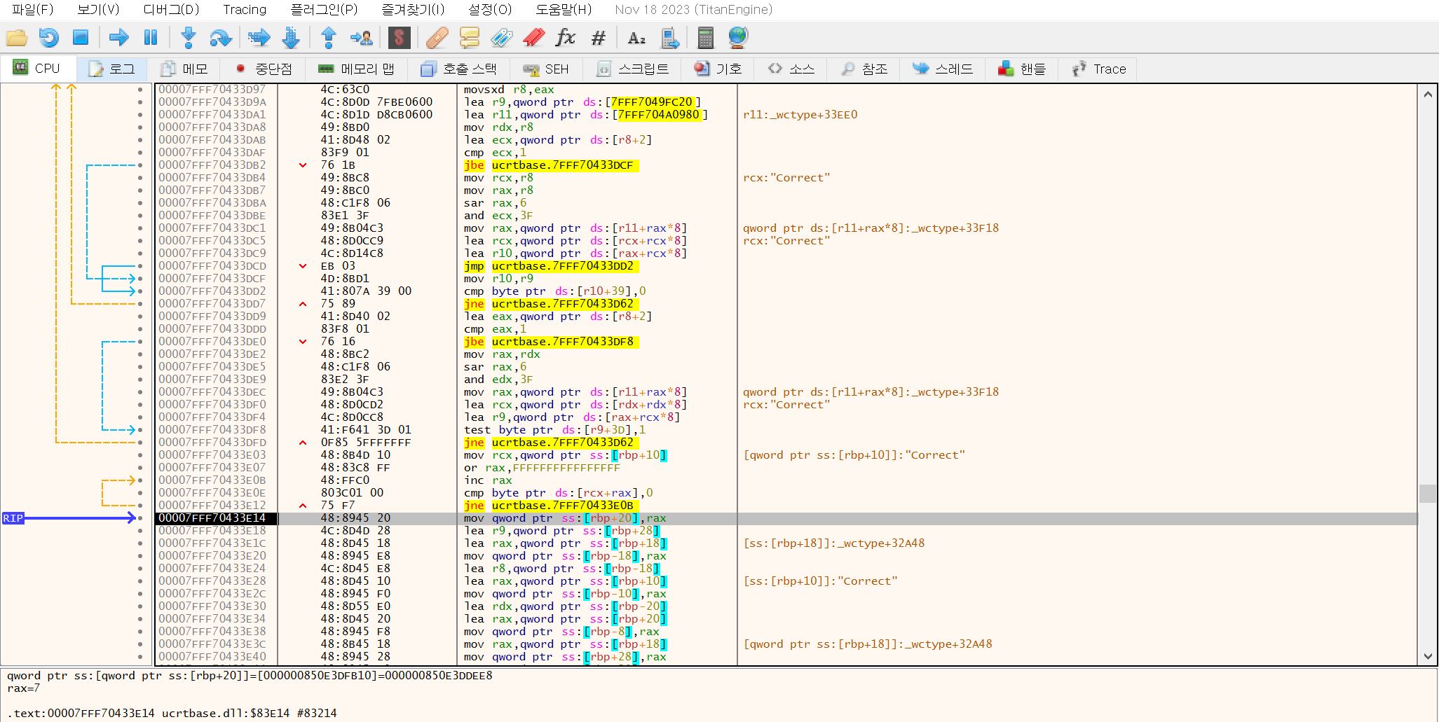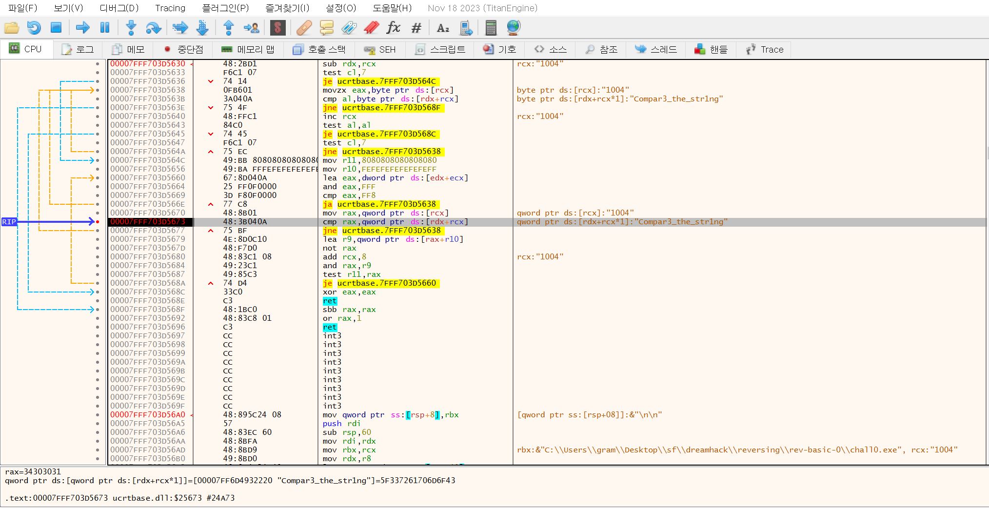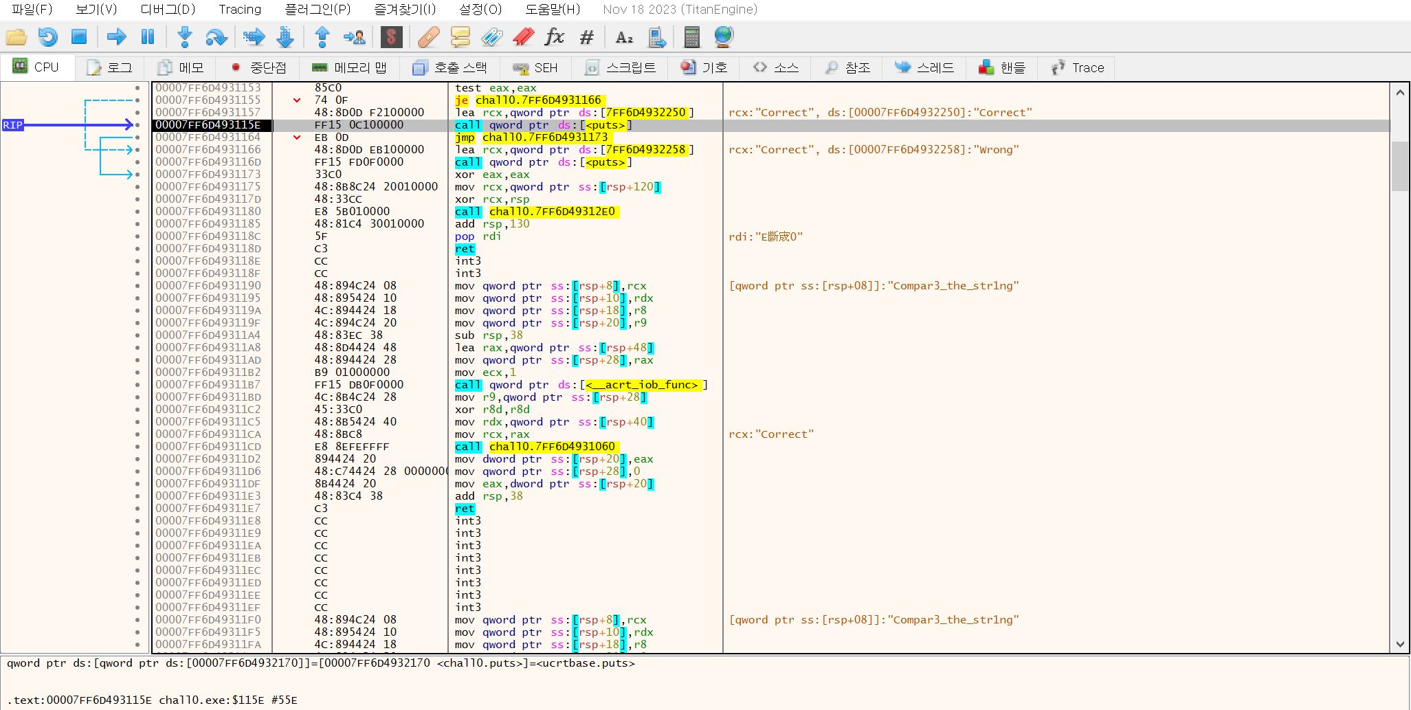 처음부터 다시 실행시켜서 정답으로 추정되는 문자열을 입력하고 살펴본다.