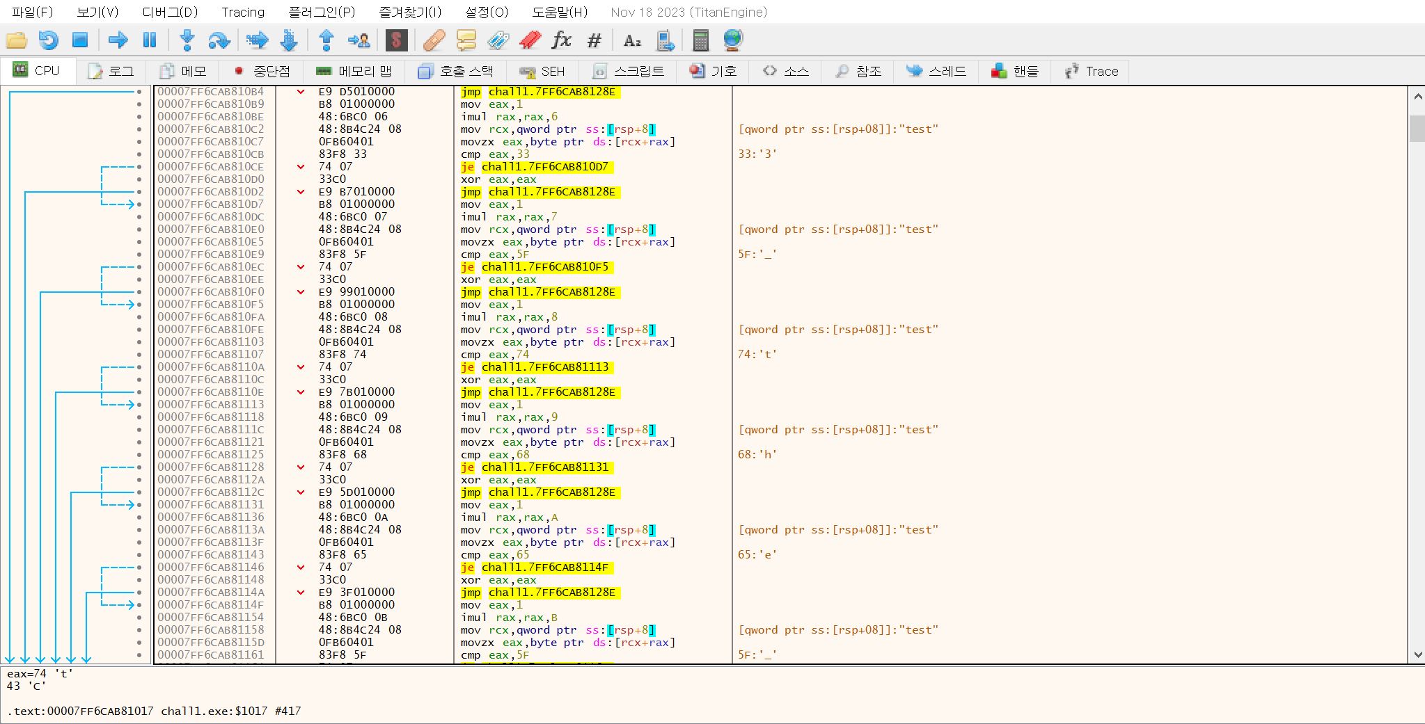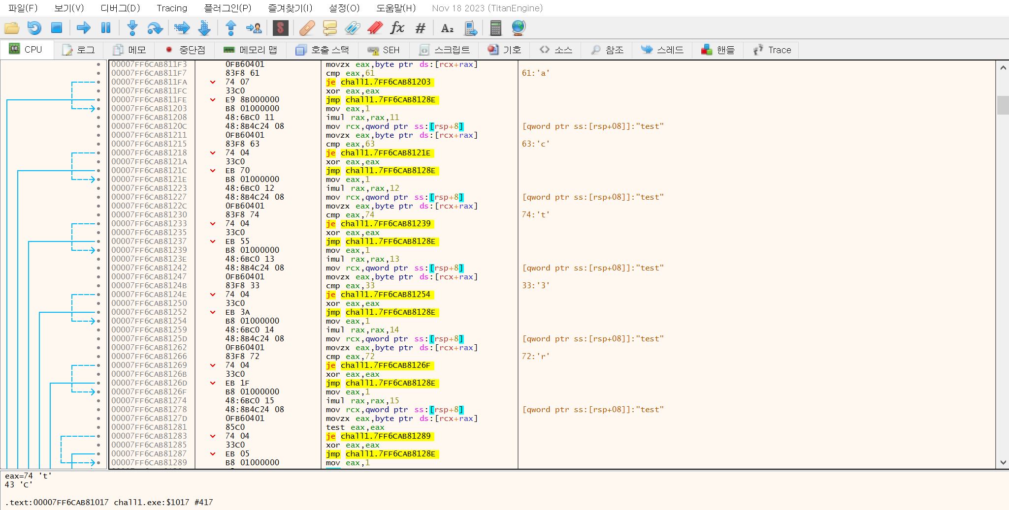 바로 x64dbg로 문제파일에 있던 실행파일을 열어본다.