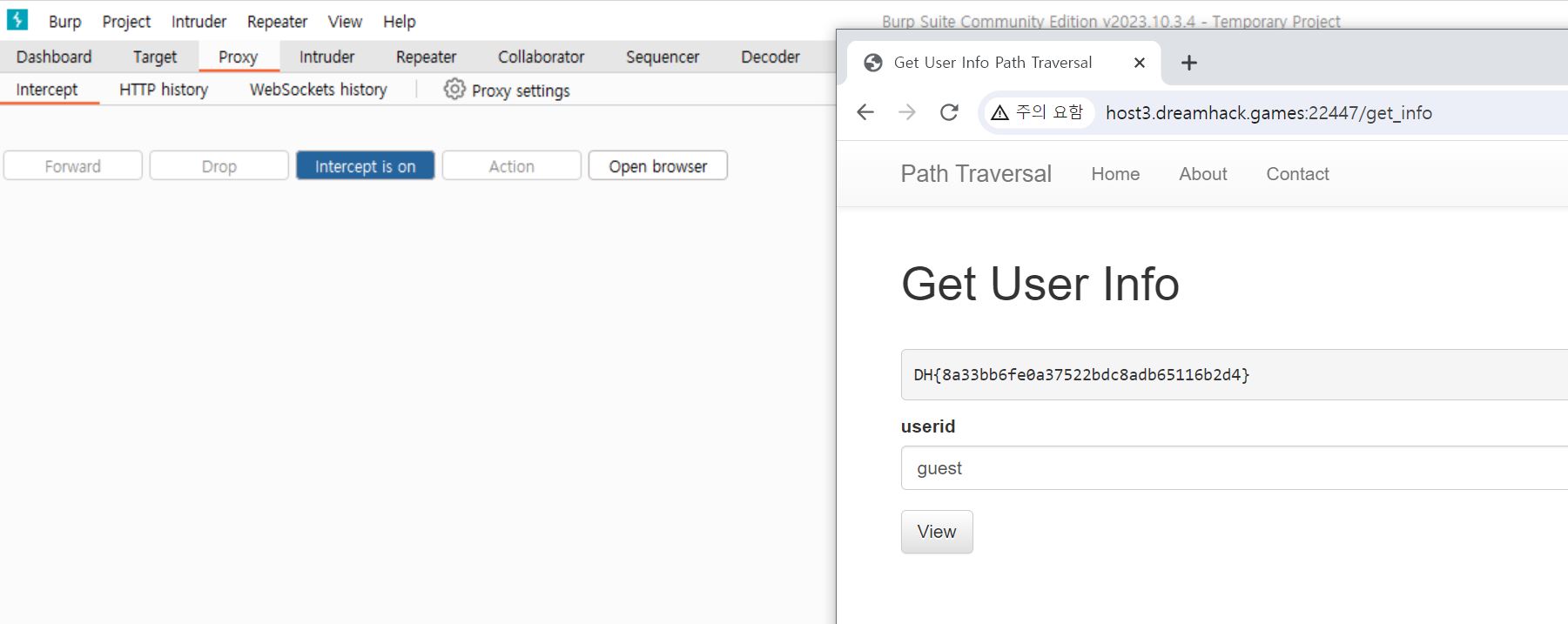 이 부분을 userid=../flag로 바꾸고 Forward를 누르면 플래그값을 얻을 수 있게 된다.