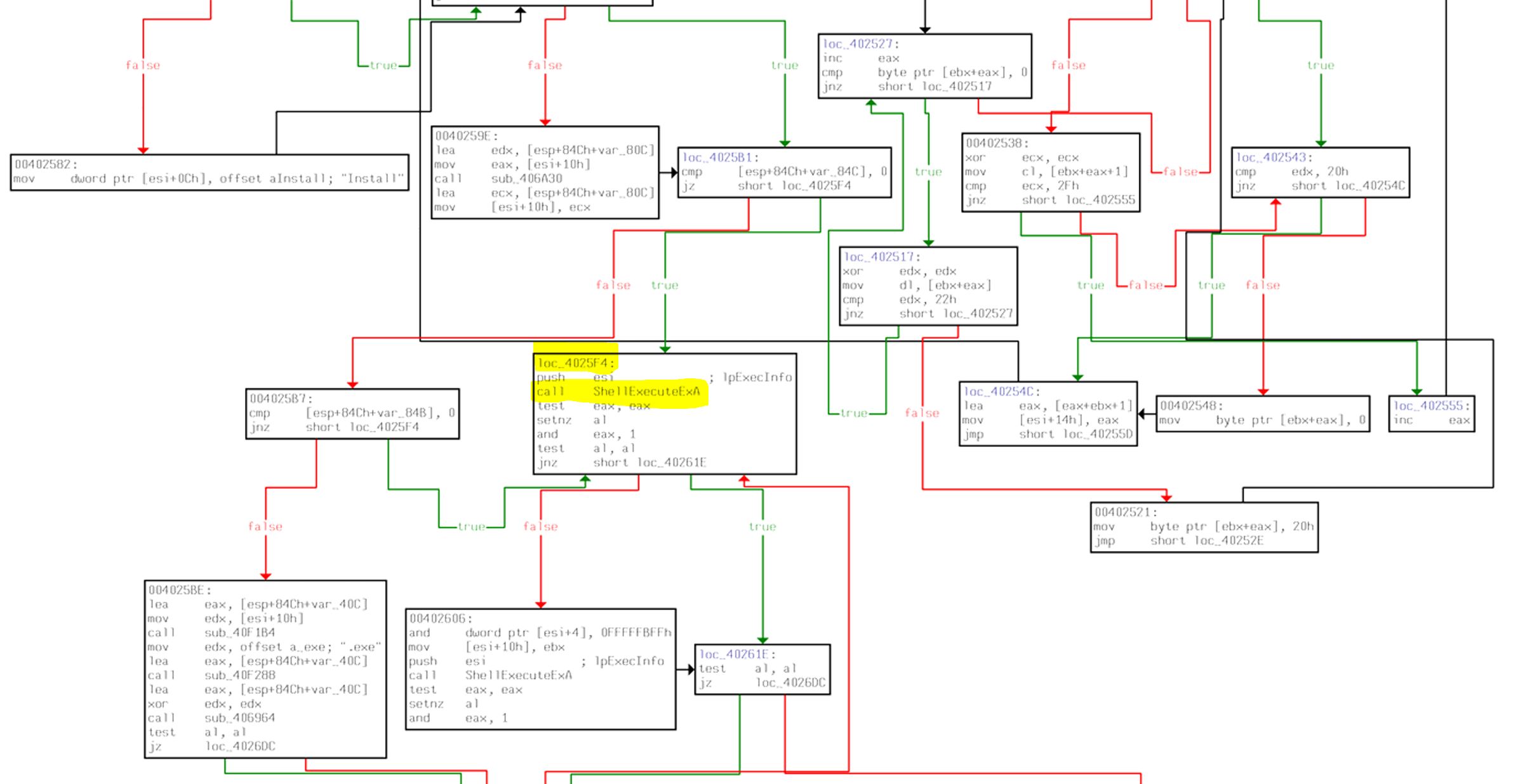 따라서 앞서 하이라이트 표시한 부분이 문제 설명에 나와있던 "다른 악성코드를 실행하여 추가 감염을 일으키는 함수의 주소"임을 알 수 있다.