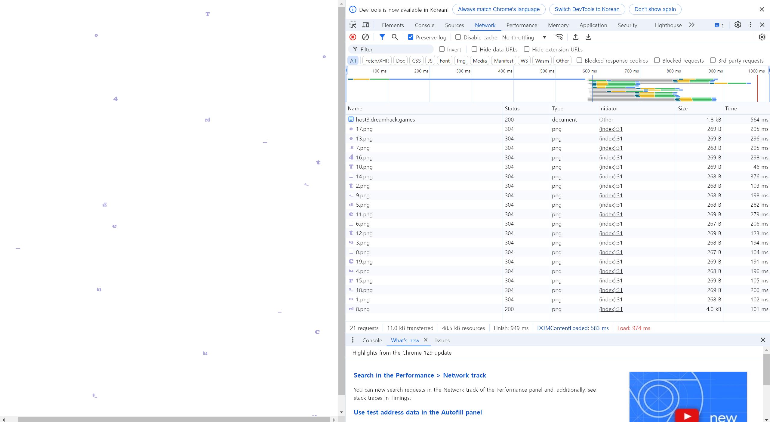 위와 같이 개발자도구 열어서 네트워크탭 들어가면 날아다니는 글자들이 뭔지 확인할 수 있다. 순서대로 배치만 하면 끝인 정말 간단한 문제이다.